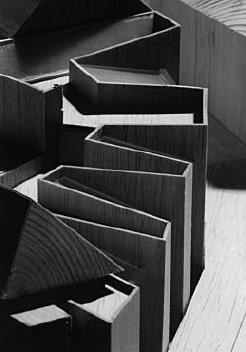 A vízivárosi Corvin téren hatvan éve üresen álló kisméretû, élesszögû telek beépítése elsõ pillanatban szinte lehetetlen feladatnak tûnik, a nagyváros itt találkozik a várhegy lejtõs, kisutcás léptékével. Juhász Ákos megoldotta a feladatot. Egy összehajtogatott papírhoz hasonlító, szabálytalan, szétnyíló házat képzelt el az együtt élõ korok rétegzettségének megjelenítõjeként. A tagolt épület léptékében illeszkedik környezetéhez. A kívülrõl zárt fal belülrõl nyílik meg. A látszólag csupán a morfológiának alárendelt formát valójában a részletekig végiggondolt funkcionalitás uralja: nincs fölösleges, értelmetlen, öncélú részlet - ez talán ma a legelfogadhatóbb építész-attitûd. A fallal lezárt terek raktárokat, mellékfunkciókat rejtenek, a kirekesztett üvegfalú terek a könyvtár olvasó, illetve zenehallgató terei, melyek a nap fényével közvetlen kapcsolatban vannak. Az épület földszintjét átvágó lépcsõs passzázs a Schulek-féle gyalogostengely folytatásaként mintegy tiszteletadás az elõdöknek. Errõl a belsõ passzázs-utcából hangszerüzletek nyílnak a földszinten, míg az emeleti közlekedõkbõl a könyvtár olvasótermei.