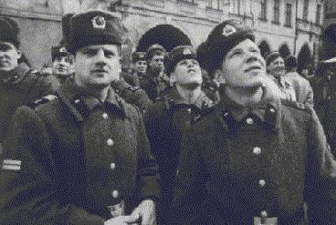 Éjfél után már nem bírták tovább, berontott az R-Gárda. Fölkapcsolták a villanyt, kikapcsolták a magnót. Hunyorogva néznek a csehszlovákok, rettentõ bunkónak tartanak mindenkit, de ütni nem mernek – ennyi idõ alatt azért még nem felejtették el, hogy a házirendet annak idején õk is aláírták. Mintha eddig is azért érezték volna jól magukat, mert komolyan vették, szó szerint elhitték a házirendet (ilyen drasztikus retorziót nem helyezett kilátásba), már nem érzékelték a verbális szinten túli metakommunikációs jelzéseket. Pedig a házirend nem azért készült, hogy elfogadják és ennek ellenére is jól érezzék magukat, hanem azért, hogy irtózzanak tõle, de ne merjenek tevõlegesen fellépni ellene . Arra nem gondolt annak idején senki, hogy valaki majd olyan jól berendezkedik a világosan megfogalmazott tilalmak között, hogy – betartva a legalapvetõbb elõírásokat (lásd a cipõket az ajtó elõtt) – jóízûen bulizik villanyoltás után, abba se akarja hagyni. Maga a szobapéká is teljesen meg volt rökönyödve (nem csoda, egy húron pendült): „Kommunista becsületemre esküszöm, még csak nem is sejtettem, hogy a Szovjetunió katonai erõvel akar ellenünk beavatkozni. Hogyan történhetett ez meg... Egész életemet a Szovjetunióval való együttmûködésnek szenteltem – és ezt tették velem, ez életem tragédiája.” 6